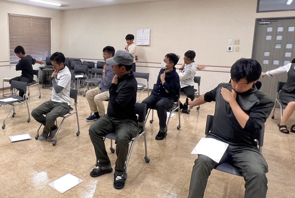 看護師経験もある先生をお招きし、座ってできる簡単なストレッチを、いくつか教えていただきました。