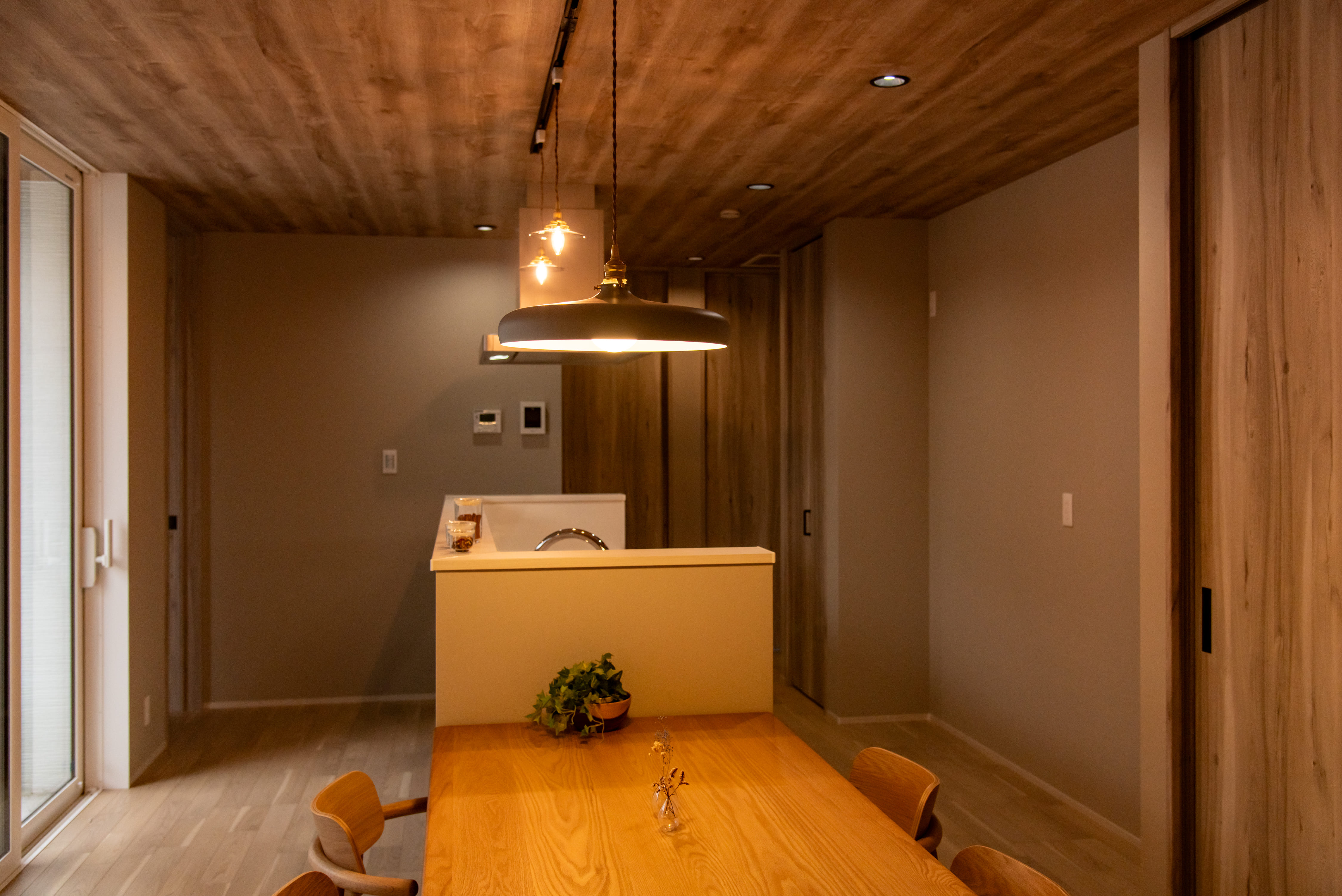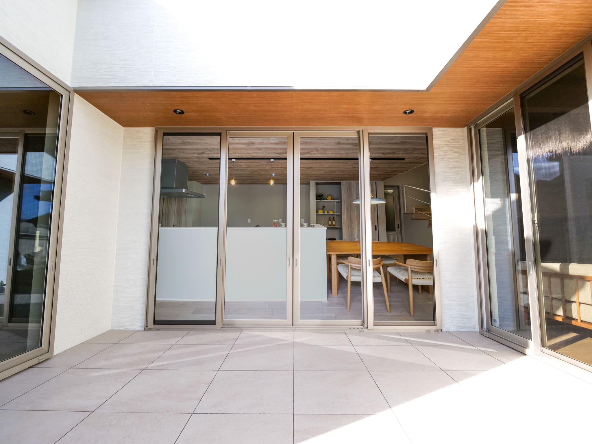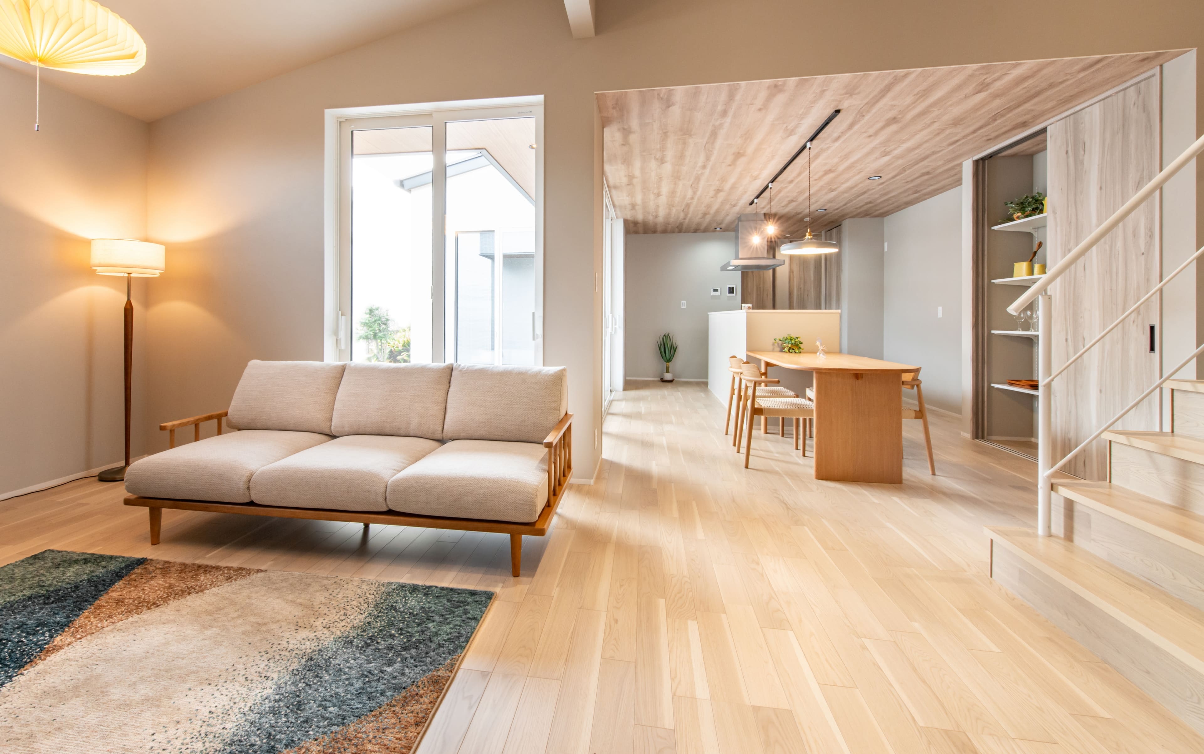 木目の天井が室内と外をつなぎ、日々の暮らしに豊かさと安らぎをもたらす特別な空間に。