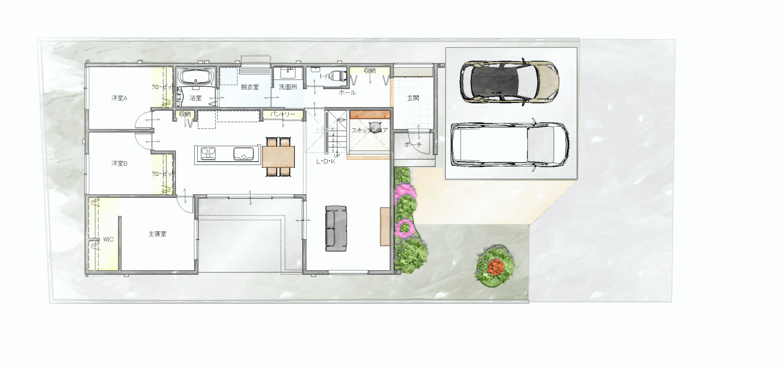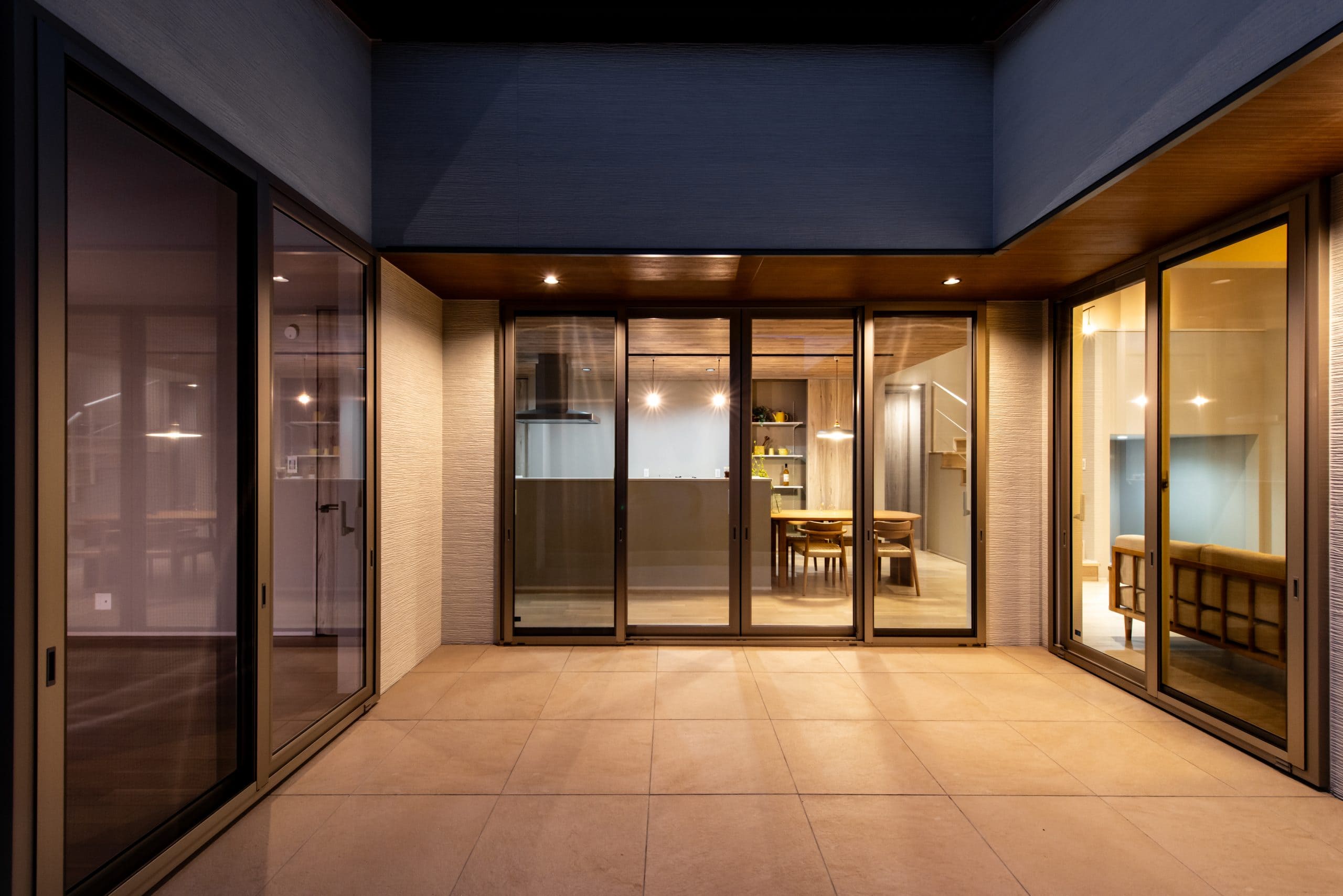 LDKのどこからでも中庭を眺められる設計が、空間に広がりと一体感を生み出します。