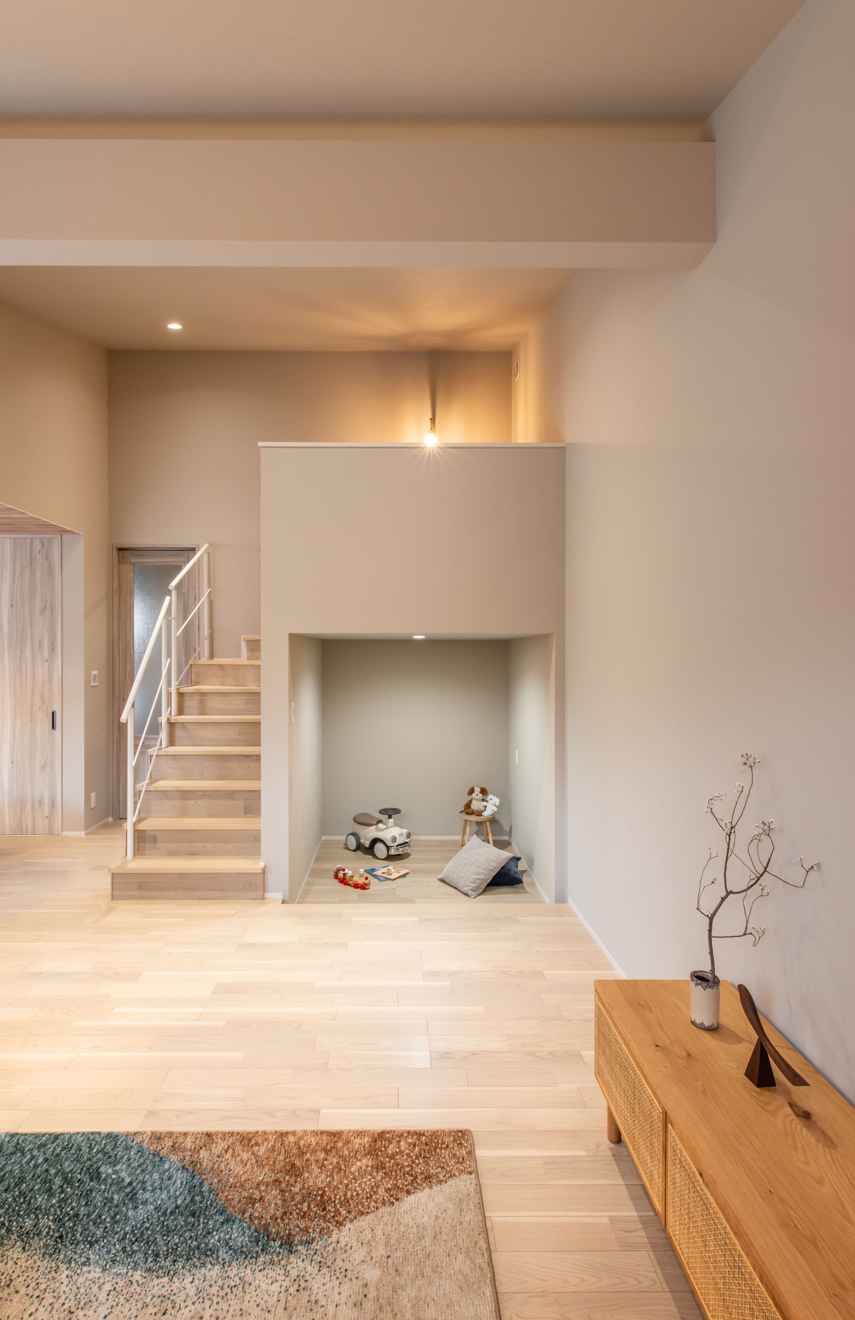 ロフト空間と天井高を下げた隠れ家部屋空間が、暮らしに遊び心をプラスします。